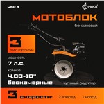 Оснащен бензиновым 4-х тактным двигателем с воздушным способом охлаждения, мощностью 7 л.с. Запуск мотора производится с помощью ручного стартера. Мотоблок поможет производить различные работы в сельском и коммунальном хозяйстве.