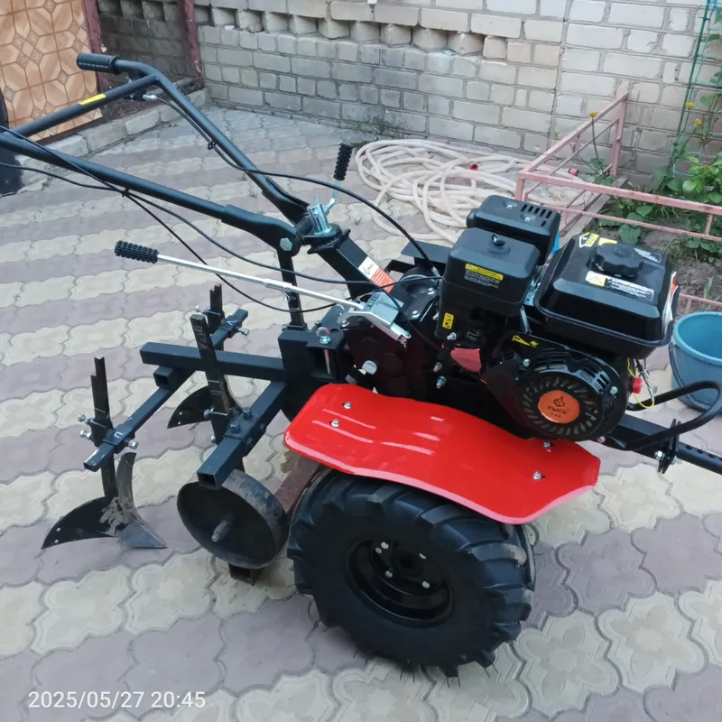 Оснащен бензиновым 4-х тактным двигателем с воздушным способом охлаждения, мощностью 7 л.с. Запуск мотора производится с помощью ручного стартера. Мотоблок поможет производить различные работы в сельском и коммунальном хозяйстве.