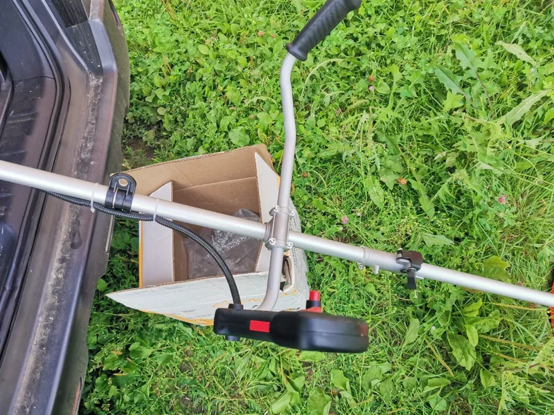 Велосипедная рукоятка удобна в обращении, широкое расположение рук делает движения триммером более естественными.